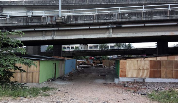 kolong tol Pluit di Kelurahan Penjagalan, Kecamatan Penjaringan, Jakarta Utara, kembali dipadati dengan bangunan liar semi permanen. Bangunan yang mayoritas terbuat dari tripleks tersebut berdiri di sepanjang Jalan Kepanduan I, atau tepatnya di seberang RPTRA Kalijodo.