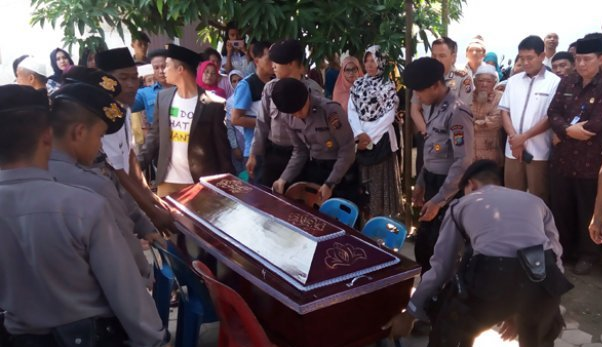 Aiptu (anumerta) Jakamal Tarigan dimakamkan di tempat pemakaman umum (TPU) muslim Pasar V, Desa Helvetia, Deliserdang, Sabtu (3/6).