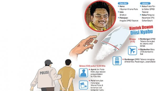 Pekanbaru, ToeNTAS.Com ,- Anggota DPRD Kabupaten Tabanan, I Nyoman Wirama Putra, ditangkap setelah kedapatan konsumsi narkoba jenis sabu-sabu di sebuah kamar di Hotel Alila, Jakarta.