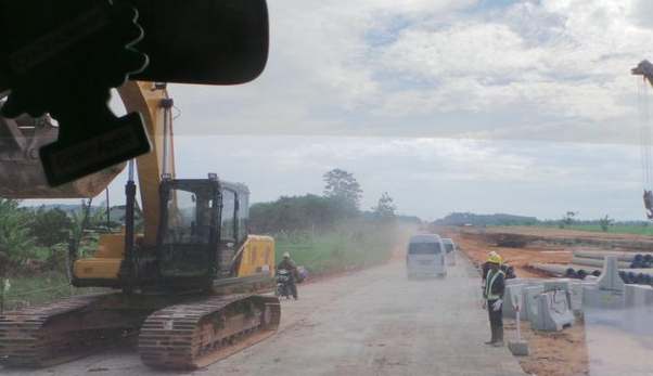 Jalan tol yang sudah dipastikan bisa dilalui ini juga telah dikerjakan perkerasan Jalan Timbunan dan pekerjaan lapis beton (lean concrete) dengan tebal 10 cm.