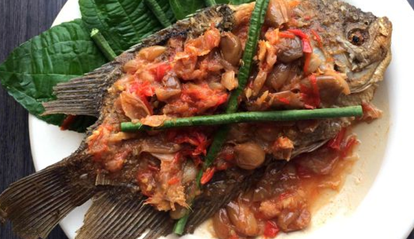 Siraman sambal pecak di atas ikannya memang terlihat agak menyeramkan pedasnya. Tetapi, begitu disantap, rasa pedasnya tak terlalu garang. Justru ada sedikit semburat rasa asam segar di dalam sambalnya. Kombinasi ikan gurame goreng kering dan panas berpadu dengan sambal pecak yang unik membuat makan pun makin nikmat.