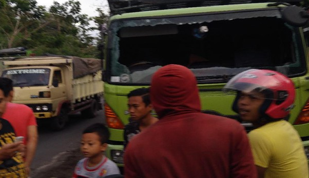 Bus Medali Mas tersebut melaju dari arah timur ke barat. Sedangkan truk datang dari arah berlawanan.