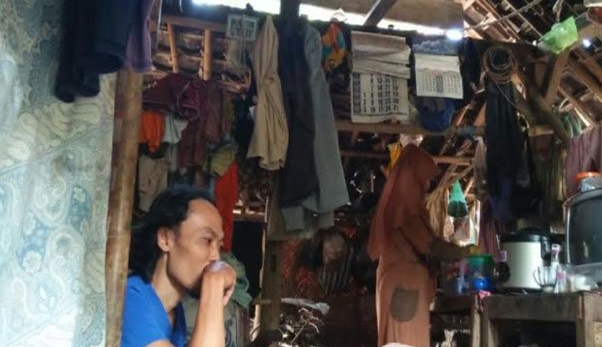Begitu juga dinding rumah setinggi 1,5 meter, terbuat dari anyaman bambu atau gedek, serta tiang bambu yang tampak lapuk.