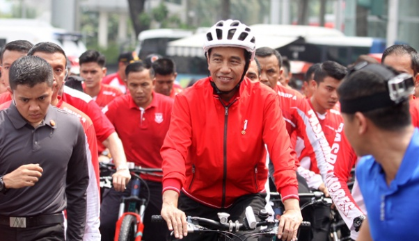 Jakarta, ToeNTAS.com,- Presiden Joko Widodo hari Minggu ini memanfaatkan Car Free Day dengan bersepeda bersama sejumlah menteri Kabinet Kerja. Jokowi memilih bersepeda untuk menuju tempat acara pembagian sertifikat di Jalan MH. Thamrin.
