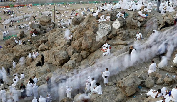 (Jemaah haji mulai memadari Arafh untuk melaksanakan rukun haji, wukuf di arafah.)
