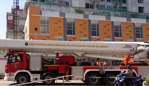 Dalan peristiwa itu, mobil tangga yang disiagakan di lokasi adalah milik DPKP DKI Jakarta. (kom.c/hadi)