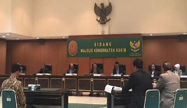 “Menjatuhkan sanksi kepada terlapor dengan sanksi berat dengan pemberhentian dengan hormat,” kata MKH Jaja Ahmad Jayus di Ruang Wirjono Prodjodikoro, lantai 2, Gedung Utama MA, Jalan Merdeka Barat, Jakarta Pusat, Selasa (17/10/2017) pukul 12.20 WIB.