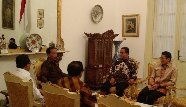 Jakarta, ToeNTAS.com,- Gubernur dan Wakil Gubernur  DKI Jakarta Anies Baswedan dan Sandiaga Uno mengunjungi Istana Kepresidenan Jakarta, Rabu, untuk bertemu Presiden Joko Widodo.