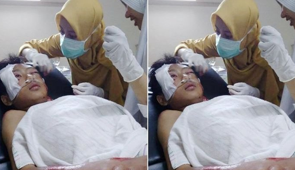 Kemudian pelaku melempar batu batako dan mengenai dada sebelah kanan.