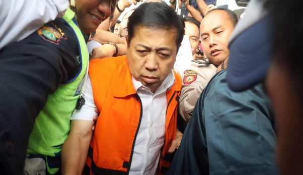 Terhadap Novanto, diterapkan Pasal 2 ayat 1 subsider Pasal 3 UU Pemberantasan Tindak Pidana Korupsi juncto Pasal 55 ayat 1 ke-1 KUHP. Novanto kini mendekam di Rutan Kelas I KPK Cabang Jakarta Timur atau di gedung baru KPK. Dia menjalani masa 20 hari tahanan terhitung sejak 19 November 2017. (det.c/arif)