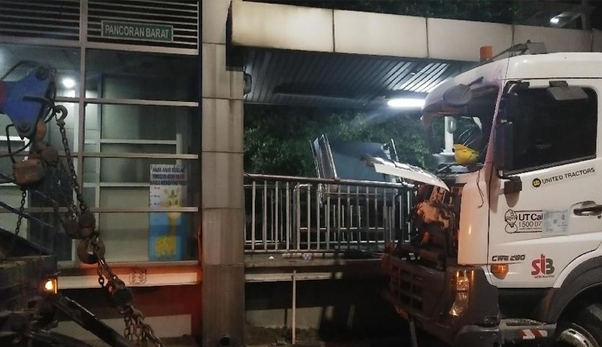 Saat ini truk bernomor polisi B 9148 FIA itu disita polisi. Ada pun bagian depan halte yang mengalami kerusakan diantaranya bagian railing halte hingga atap.