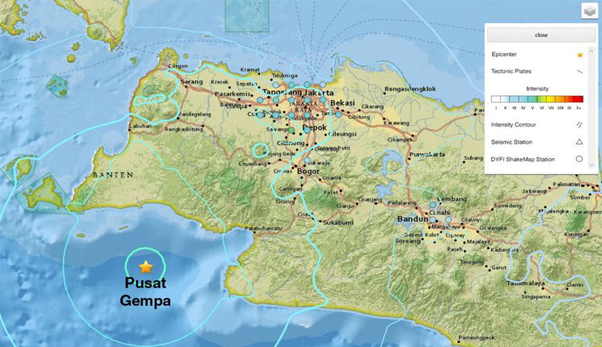 Gempa tektonik berkekuatan 6,1 magnitudo tersebut terletak di di laut, yakni 67 Kilometer arah barat daya Kota Bojonghaur, Kabupaten Sukabumi, Jawa Barat atau pada 7,23 lintang selatan dan 105,9 bujur timur. BMKG menyatakan gempa itu tak berpotensi menimbulkan tsunami.