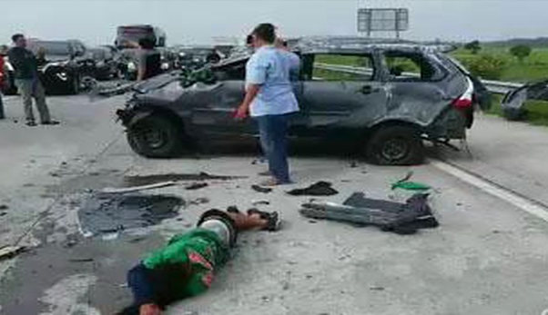 “Mobil melewati tali pembatas tol dan terguling di jalur berlawanan. Ini laka tunggal, tak ada kendaraan lain yang terlibat kecelakaan,” terangnya.