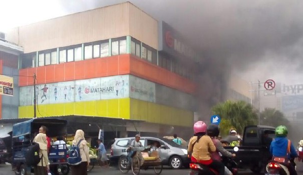 Kudus, ToeNTAS.com,- Matahari Mall Kudus terbakar pada Kamis (22/2/2018) sekitar pukul 06.44 WIB. Sampai saat ini aksi pemadaman masih dilakukan.