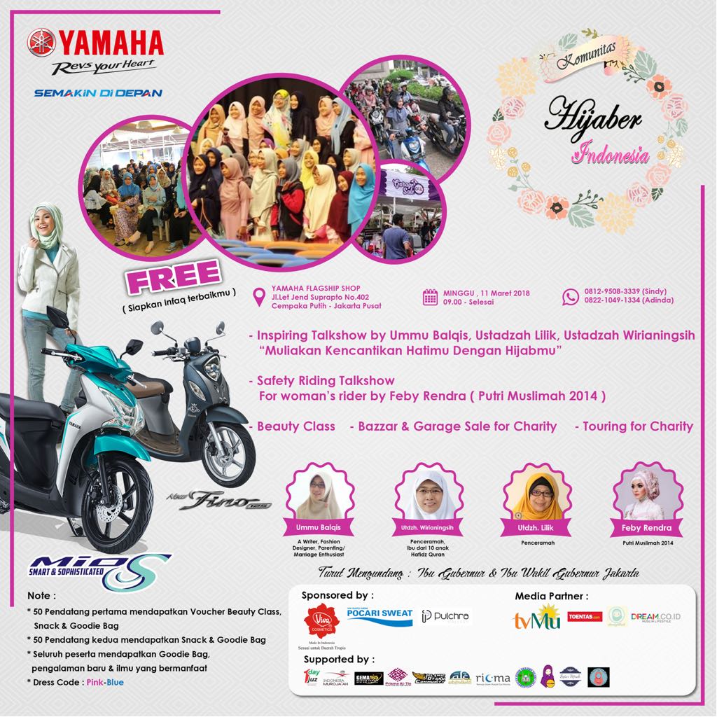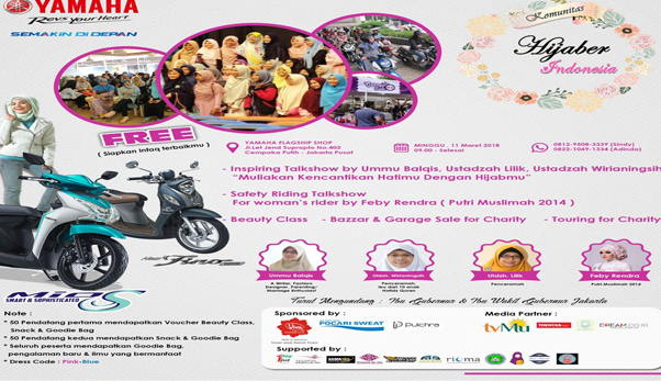 Jakarta, ToeNTAS.com,- Untuk memperingati Woman’s Day, Hijaber Indonesia yang memang merupakan wadah silaturahmi Hijaber seluruh Indonesia bersama dengan Yamaha Motor Jakarta berencana mengadakan sebuah rangkaian acara bertemakan perempuan.