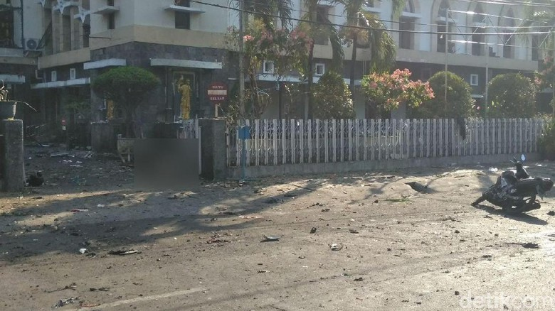 Surabaya, ToeNTAS.com,-  Samsia, seorang pedagang terkena imbas ledakan bom bunuh diri di Gereja Katolik Santa Maria, Jalan Ngagel Madya Utara, Surabaya. Dia terlempar sampai 15 meter ke arah jalanan.