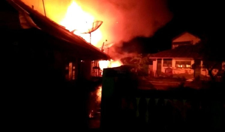 Kebakaran ini terjadi sekitar pukul 22.00 WIB. Proses pemadaman masih berlangsung hingga kini. Api yang membubung tinggi sulit dipadamkan lantaran sebagian besar rumah berkonstruksi kayu.