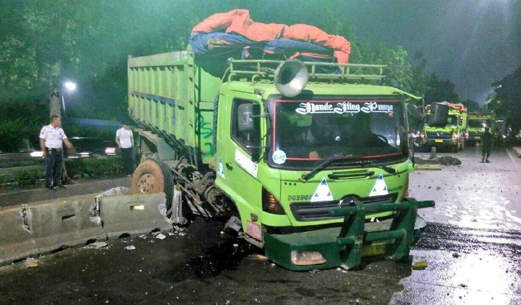 Informasi ini pertama kali dilihat detikcom dari twitter @TMCPoldaMetro, Sabtu (2/6/2018) pukul 02.30 WIB. Dari foto yang dibagikan, tampak roda truk dalam posisi agak melintang dengan roda bagian depan patah. Di foto lain sejumlah petugas juga tampak membenahi beton pembatas jalan.