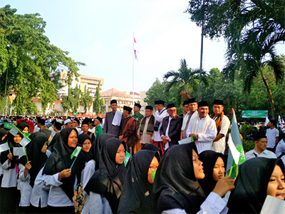 “Karena itu para santri satu kata satu komando untuk tegaknya indonesia. Kita sama-sama ingin memberitahukan kepada dunia bahwa Depok adalah kota santri.