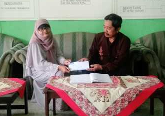 Pimpinan Perusahaan, R. N Yunani Pursita (kiri) saat memberikan bantuan kepada Ketua Yayasan Yatim Piatu 'An-Nur' di kawasan Depok