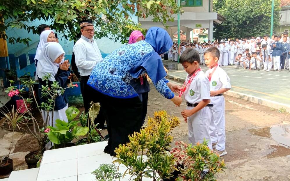 “Salah satu bentuk ungkapan terima kasih untuk para pahlawan adalah dengan belajar dan bekerja keras demi meraih kemenangan seperti yang dilakukan oleh Ananda Muhammad Zhafari Syaban,” tukas Neni Argaeni yang langsung memanggil Zhafari maju ke depan, pemandangan ini pun disambut tepuk tangan seluruh peserta upacara.