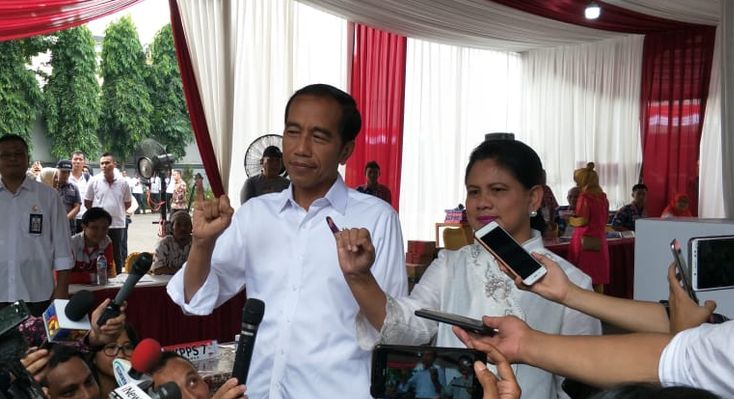 JAKARTA, ToeNTAS.com,- Presiden Joko Widodo mengaku lega setelah menggunakan hak pilihnya dalam Pemilu 2019, Rabu (17/4/2019). Jokowi didampingi istri, Iriana Jokowi, mencoblos di Tempat Pemungutan Suara (TPS) 008 yang terletak di pelataran gedung Lembaga Administrasi Negara, Kelurahan Gambir, Kecamatan Gambir, Jakarta Pusat. “Ploongggg,” kata Jokowi kepada wartawan seusai mencoblos.