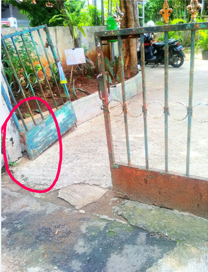 Menariknya, pintu pagar juga rusak dan ada beberapa puntung rokok dan sampah dedaunan yang berserakan di taman padahal disitu terdapat tulisan “Warning, jangan buang sampah disini termasuk puntung rokok”.
