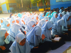“Barang siapa orang yang menyambut datangnya bulan suci Ramadhan maka Allah haramkan masuk neraka. Aamiin Allahuma Aamiin,” tutur Neni Argaeni yang langsung diaminkan oleh seluruh siswa.
