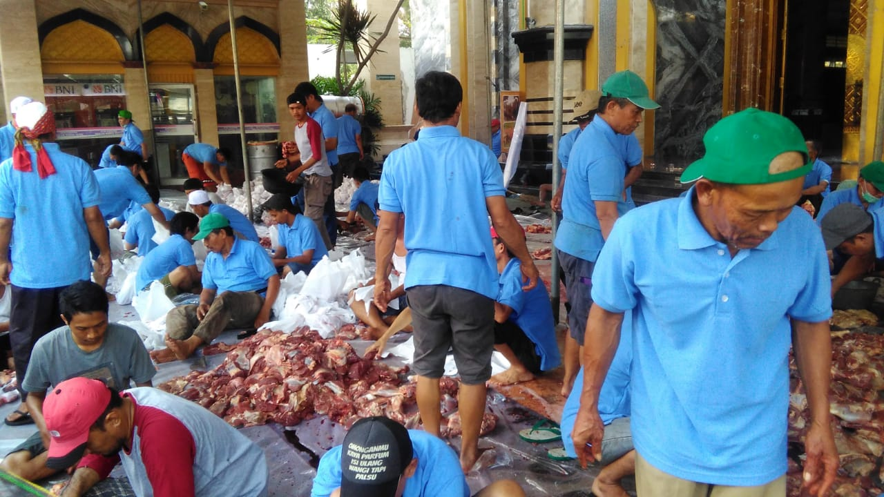 Nasrulloh menambahkan, dalam pelaksanaan pemotongan kurban sapi dan kamping dibantu 80 anggota panitia, dan dilaksanakan sejak usai sholat Idhul Adha hingga selesai pukul 13. 30, kemudian pada pukul 14.00 langsung dibagikan kepada 1700 anggota masyarakat sekitar.
