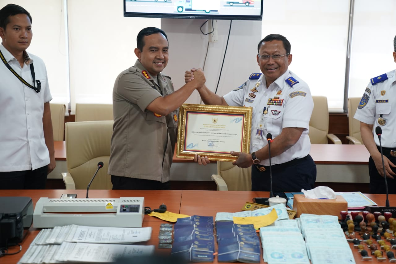 Penghargaan tersebut merupakan bentuk apresiasi atas prestasi jajaran Polri, yang membongkar sindikat pemalsu buku KIR beberapa waktu yang lalu.